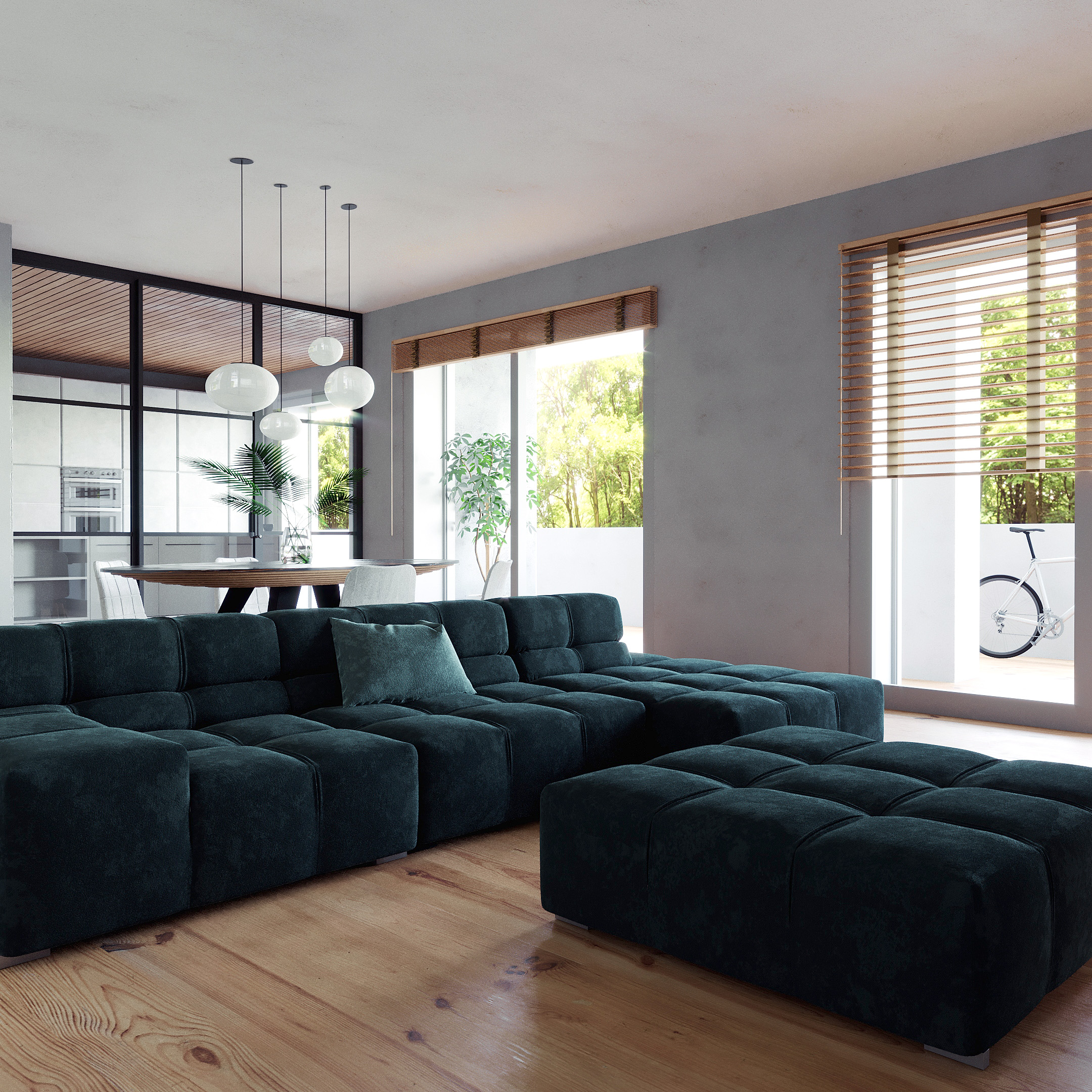 Zona Giorno – Divano modulare Tufty time, parquet in rovere finitura naturale