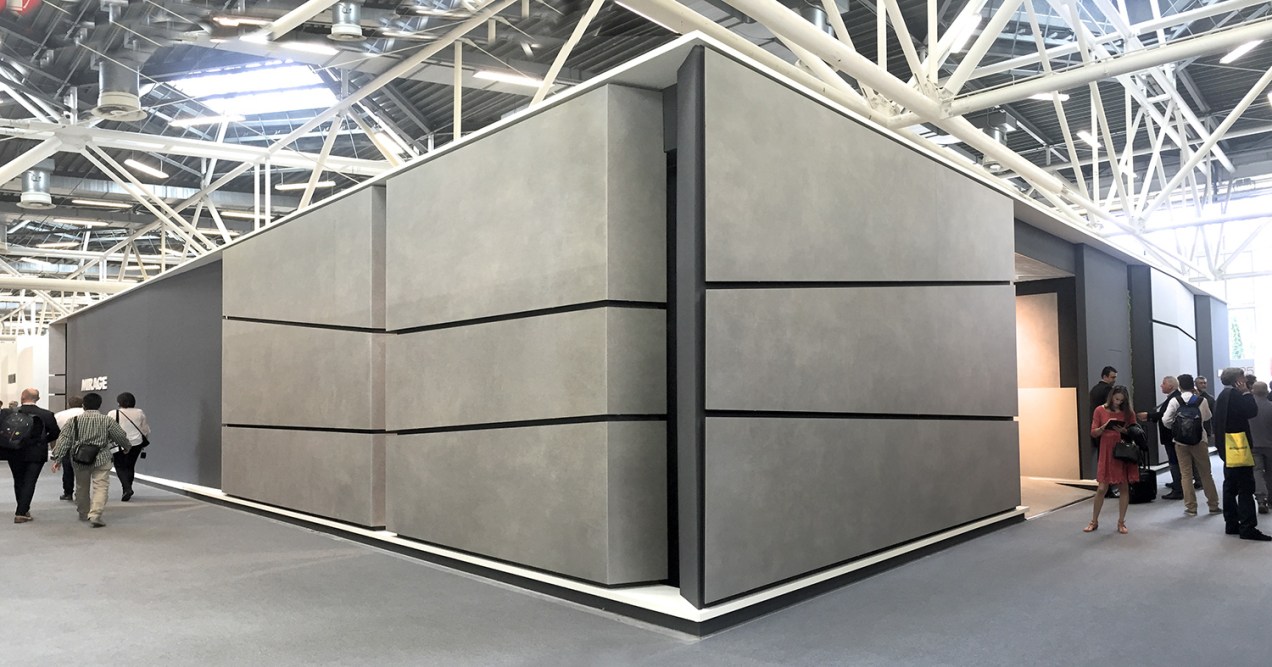 stand 2017 Mirage – Cersaie 2017 Nuovi esterni dello stand Mirage al Cersaie 2017 progettati dallo studio per esaltare le nuove grandi lastre 160x320cm con questa particolare finitura effetto cemento serie GLOCAL 03 Correlati